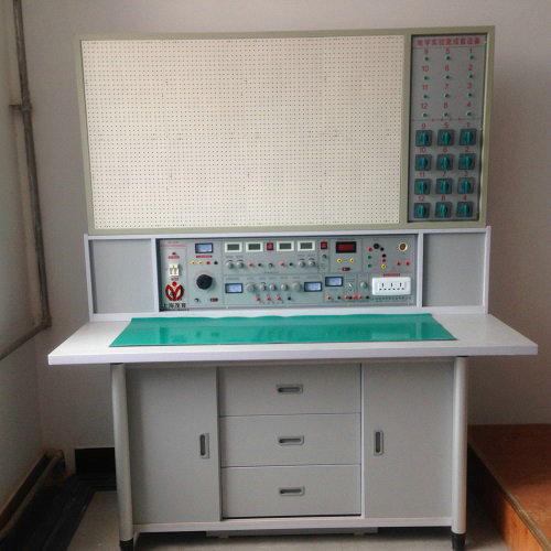 實(shí)驗(yàn)桌后面二支截面尺寸70mm×70mm桌腳向上延伸,與一次成型鋁壓鑄框架連接構(gòu)件構(gòu)成(非焊接工藝)牢固的支架,與主機(jī)箱、儀器架、電源控制箱組成一個(gè)完整的實(shí)訓(xùn)屏。