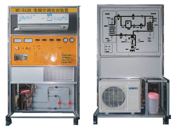 4、空調(diào)整機單元1套:包括熱泵型分體空調(diào)所必需的一些部件,如蒸發(fā)器、冷凝器、壓縮機、四通閥等,管路中還設(shè)有控制閥等實訓所必需的部件