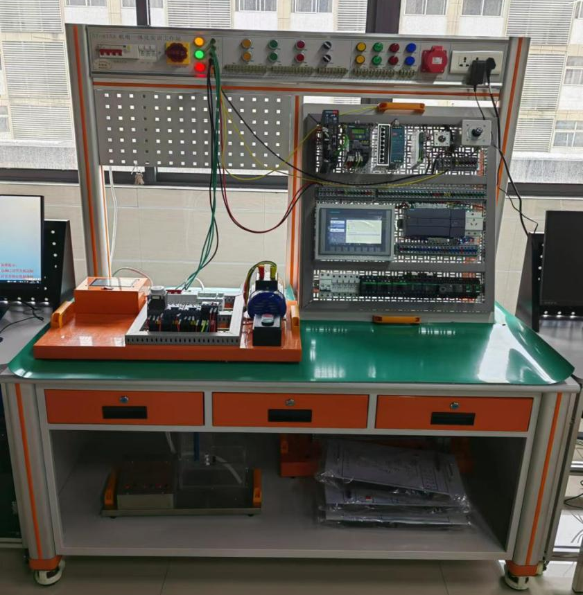 電氣自動(dòng)化安裝與維護(hù)實(shí)訓(xùn)裝置包含實(shí)訓(xùn)平臺(tái)、控制掛板、應(yīng)用模塊、電腦桌、圓凳三部分組成,實(shí)訓(xùn)平臺(tái)采用優(yōu)質(zhì)鋁型材做骨架,鋁型材立柱與實(shí)訓(xùn)桌面連接。左右兩側(cè)及后面封裝優(yōu)質(zhì)鋼板,正面設(shè)計(jì)儲(chǔ)物柜與抽屜。