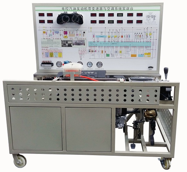 電控發(fā)動(dòng)機(jī)帶自動(dòng)變速器與空調(diào)綜合實(shí)訓(xùn)臺(tái)-采用卡羅拉系統(tǒng)為基礎(chǔ),對(duì)發(fā)動(dòng)機(jī)可進(jìn)行起動(dòng)、加速、減速等工況的實(shí)踐操作,對(duì)自動(dòng)變速器可進(jìn)行檔位顯示、空檔起動(dòng)、前進(jìn)檔及倒檔運(yùn)行等工況實(shí)踐操作并做失速實(shí)驗(yàn)、空調(diào)系統(tǒng)各項(xiàng)真實(shí)操作?烧鎸(shí)展示電控汽油發(fā)動(dòng)機(jī)和自動(dòng)變速器、空調(diào)系統(tǒng)組成結(jié)構(gòu)和工作過程。