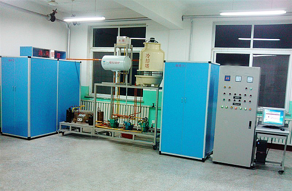 中央空調(diào)教學(xué)實訓(xùn)臺-采用6匹水冷機(jī)組,不銹鋼框架結(jié)構(gòu),終端建立一個專門房間進(jìn)行客戶的模擬,大廳的模擬直接利用教室原來空間,采用分水器和集水器對冷量或熱量進(jìn)行分配調(diào)節(jié),整個中央空調(diào)采用三菱FX2n-48MR PLC可編程控制器及工業(yè)總線控制,由計算機(jī)通過通信總線與PLC進(jìn)行通信,控制整個中央空調(diào)的運行。空調(diào)的運行參數(shù)由各類傳感器進(jìn)行采集,并通過通信總線送入計算機(jī)中,通過專用中央空調(diào)組態(tài)控制軟件進(jìn)行實時監(jiān)控。組態(tài)軟件要求能夠以動畫的形式同步顯示系統(tǒng)的設(shè)備結(jié)構(gòu)、控制原理和流程。