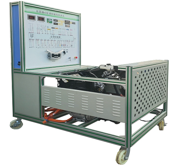 (比亞迪e5 EV450純電動汽車)電動汽車空調(diào)壓縮機(jī)、膨脹閥總成、干燥器總成、鼓風(fēng)機(jī)總成、冷凝器、冷卻電子風(fēng)扇、電動空調(diào)壓縮機(jī)控制器總成、空調(diào)蒸發(fā)箱總成、空調(diào)操作面板、直流接觸器、采暖模塊總成;高低壓空調(diào)壓力表、點(diǎn)火開關(guān)、電源總開關(guān)、急停開關(guān)、一體化全鋁合金型材搭建的移動臺架(1500×1000×1700mm ,帶自鎖腳輪裝置,帶安裝檢測端子的原理面板948×898mm)、故障模擬與排除裝置、設(shè)備操作說明書。