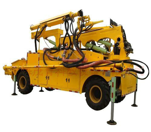 2)臂架回轉(zhuǎn)→攪拌機啟動→泥漿泵啟動→噴漿臂起升→噴漿臂前移→位置及角度調(diào)整。