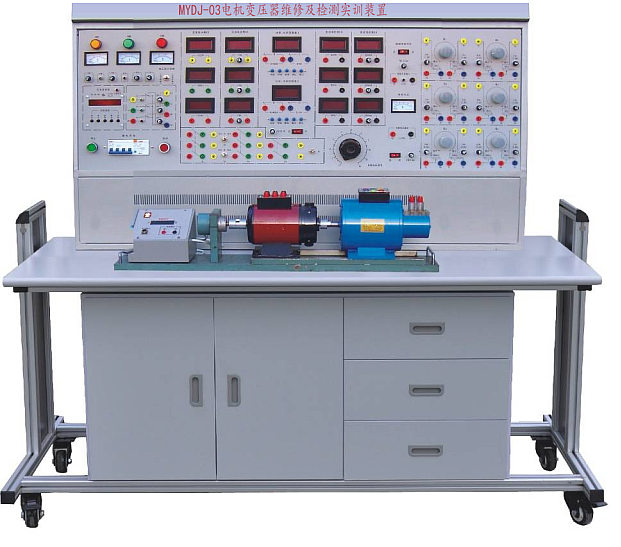 一、MYDJ-03 電機(jī)變壓器維修及檢測(cè)實(shí)訓(xùn)臺(tái)是進(jìn)行單相變壓器、單相電容運(yùn)轉(zhuǎn)異步電動(dòng)機(jī)和三相鼠籠異步電動(dòng)機(jī)的拆除、重繞、組裝、維修和電機(jī)出廠檢測(cè)的技能實(shí)訓(xùn)平臺(tái),可對(duì)學(xué)生在電機(jī)拆除、重繞、組裝及檢修方面進(jìn)行技能訓(xùn)練。適用于機(jī)電一體化、自動(dòng)化及相關(guān)電氣專(zhuān)業(yè)的《電機(jī)制造工藝》《電機(jī)維修》《電機(jī)測(cè)試》等課程,結(jié)合機(jī)械工業(yè)出版社和中國(guó)勞動(dòng)保障部《國(guó)家職業(yè)標(biāo)準(zhǔn)—維修電工》《職業(yè)技能鑒定培訓(xùn)教材—維修電工》等相關(guān)內(nèi)容。
