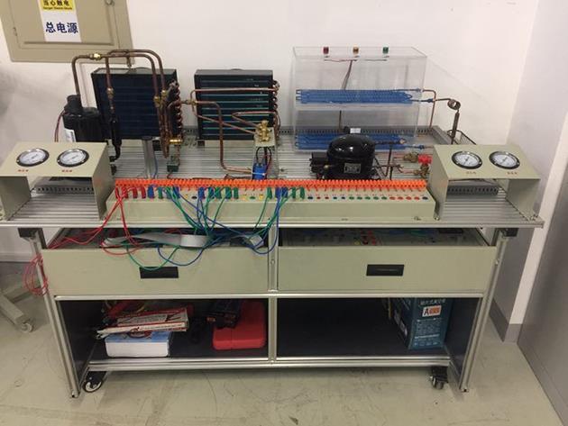 MYN-508C 現(xiàn)代制冷與空調(diào)系統(tǒng)技能實訓(xùn)裝置是一款專門為職業(yè)院校制冷類專業(yè)而研制的制冷制熱實訓(xùn)設(shè)備,電氣控制電路維修能力等是現(xiàn)代制冷制熱技能實訓(xùn)的必要工具。根據(jù)制冷制熱類行業(yè)中空調(diào)與冰箱維修技術(shù)的特點,針對空調(diào)和冰箱的電氣控制以及制冷系統(tǒng)、電氣控制系統(tǒng)、系統(tǒng)調(diào)試、故障診斷等特點進(jìn)行設(shè)計。本裝置由空調(diào)系統(tǒng)模塊,冰箱系統(tǒng)模塊,電源及儀表模塊,空調(diào)電氣控制模塊,冰箱電子溫控電氣控制模塊,冰箱智能溫控電氣控制模塊等組成。通過設(shè)備進(jìn)行項目訓(xùn)練,能提高學(xué)生的動手操作能力,計劃組織能力,制冷系統(tǒng)的調(diào)試安裝能力,電氣控制電路維修能力等是現(xiàn)代制冷制熱技能實訓(xùn)的必要工具。強(qiáng)化了學(xué)生對空調(diào)冰箱系統(tǒng)管路的安裝與維修系統(tǒng)調(diào)試等的等的綜合職業(yè)能力。