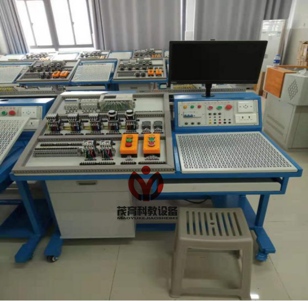工業(yè)電氣綜合實(shí)訓(xùn)裝置,工業(yè)電氣綜合實(shí)訓(xùn)設(shè)備,工業(yè)電氣綜合實(shí)訓(xùn)臺由實(shí)訓(xùn)屏(內(nèi)置電源)、實(shí)訓(xùn)桌(含鍵盤)、儲物柜三大部分組成。鋼制表面經(jīng)高溫噴塑處理,美觀大方且有效起到防銹絕緣的作用;電源箱的布局依次為電源保護(hù)裝置、電源指示裝置、電源輸出;實(shí)訓(xùn)桌左側(cè)安裝有角度可以調(diào)節(jié)的嵌入式的考核平臺1張,所有元器件均采用端子引出,學(xué)生接線只需在端子上進(jìn)行接線,可以有效的保護(hù)元器件,轉(zhuǎn)接端子采用接插兩用端子排,方便與元器件和實(shí)訓(xùn)電源屏的連接,右側(cè)裝有網(wǎng)孔板一塊,角度可調(diào)嵌入式安裝;實(shí)驗(yàn)桌底部裝有至少4個導(dǎo)向輪,方便設(shè)備移動;儲物柜采用標(biāo)準(zhǔn)結(jié)構(gòu)和抽屜式,用于存放工具以及實(shí)訓(xùn)資料。電腦通過可調(diào)節(jié)電腦支架安裝于電源屏的上方。