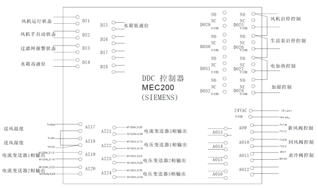 | K2 | 風(fēng)機(jī)手自動(dòng)運(yùn)行狀態(tài) | K7 | 電加濕控制 |