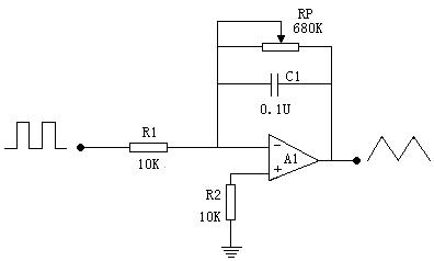 1、方波變?nèi)遣?br /> 實(shí)驗(yàn)電路如圖23-1所示。