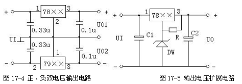 圖17-4為正、負雙電壓輸出電路,例如需要U