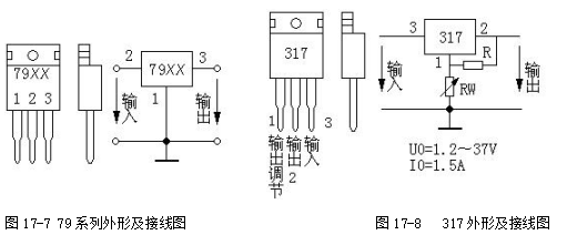 (2)圖17-8為可調(diào)輸出正三端穩(wěn)壓器317外形及接線圖。
