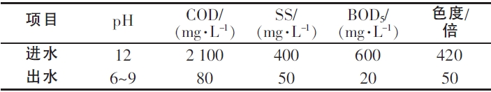 該廢水水量約1000m3/d,主要來源于絲光廢水、退漿廢水、漂白廢水及印染廢水等,堿度大,COD、色度、SS較高。廢水中含有漿料、殘余染料、纖維素、表面活性劑、漂白劑等,其中使用的上漿劑為難降解的聚乙烯醇。根據(jù)企業(yè)提供的進(jìn)水水質(zhì),確定主要進(jìn)、出水水質(zhì),如表1所示。