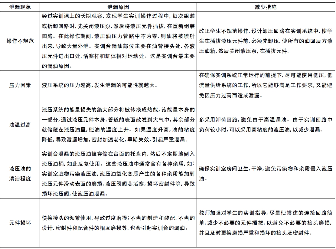 五、液壓實(shí)訓(xùn)臺(tái)的泄漏分析及防漏辦法