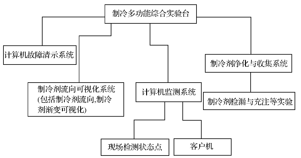 當(dāng)前,很多制冷綜合實驗臺的技術(shù)功能單一,不能實現(xiàn)對制冷設(shè)備的有效監(jiān)測和故障診斷,也不能同時兼有可視化能功能和回收制冷劑的功能。制冷實驗設(shè)備采用的實驗儀器基本上是將制冷裝置的外殼去掉,形成的一種實驗裝置,它有如下缺點(diǎn):出現(xiàn)故障時,不能對制冷劑在制冷系統(tǒng)中溫度和壓強(qiáng)的變化進(jìn)行追蹤監(jiān)測; 不能實現(xiàn)制冷劑蒸發(fā)與冷凝時的動態(tài)可視化演示; 不能表征制冷劑在循環(huán)系統(tǒng)中的流向。因此,亟待需要對制冷教學(xué)試驗臺進(jìn)行優(yōu)化設(shè)計,提高實驗臺的交互性和應(yīng)用性,使實驗臺更加適應(yīng)當(dāng)前的職業(yè)教育與技術(shù)培訓(xùn)。