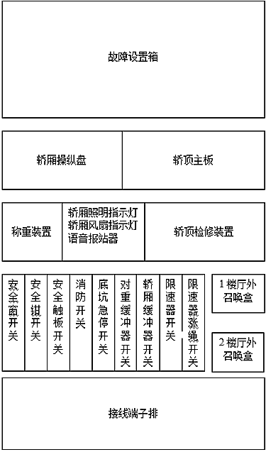 電梯電氣控制系統(tǒng)結(jié)構(gòu)主要有:樓層外呼板、轎廂指令板、轎內(nèi)顯示板、轎頂板、電梯控制柜、曳引電動(dòng)機(jī)、通信線等組成。樓層外呼板主要功能是供樓層人員上下呼梯以及查看電梯目前所在樓層以及工作狀態(tài);轎廂指令板與轎內(nèi)顯示板主要功能是供轎廂內(nèi)人員選層,以及查看電梯目前所在樓層以及工作狀態(tài);轎頂控制器主要功能是采集開關(guān)門、光幕、轎廂重量、機(jī)房控制柜等信息以及向門機(jī)變頻器發(fā)開關(guān)門指令;電梯控制柜主要作用是收集樓層外呼板、轎廂指令板、轎頂控制器以及平層開關(guān)、上下強(qiáng)換速開關(guān)、安全回路信號(hào)等指令進(jìn)行邏輯運(yùn)算,最后控制曳引電動(dòng)機(jī)正反轉(zhuǎn)或停車。