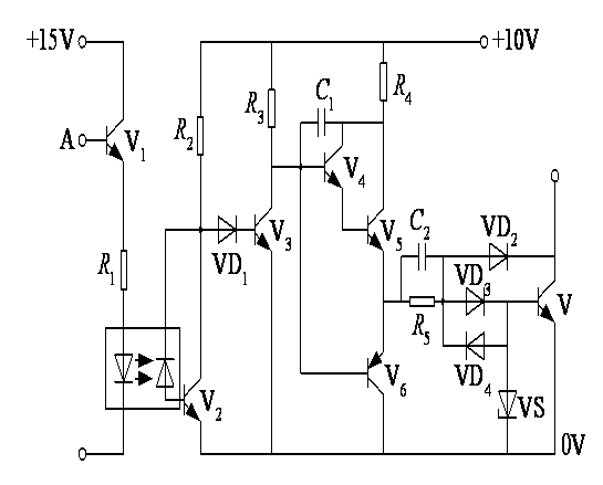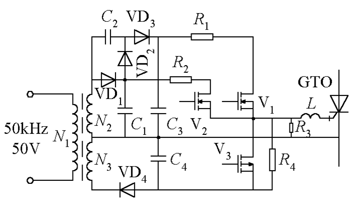 √V2關斷而V3開通時輸出負脈沖;V3關斷后R3和R4提供門極負偏壓。