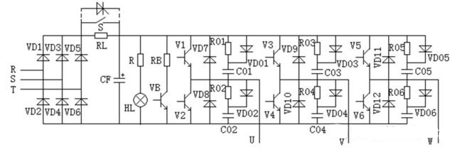 整流電路部分:將頻率固定的三個交流電變換成直流電