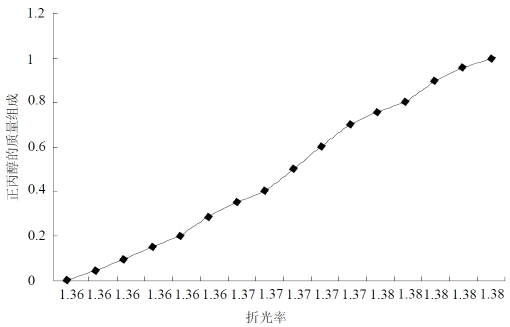 圖1 乙醇-正丙醇物系的質(zhì)量組成與折光率關(guān)系