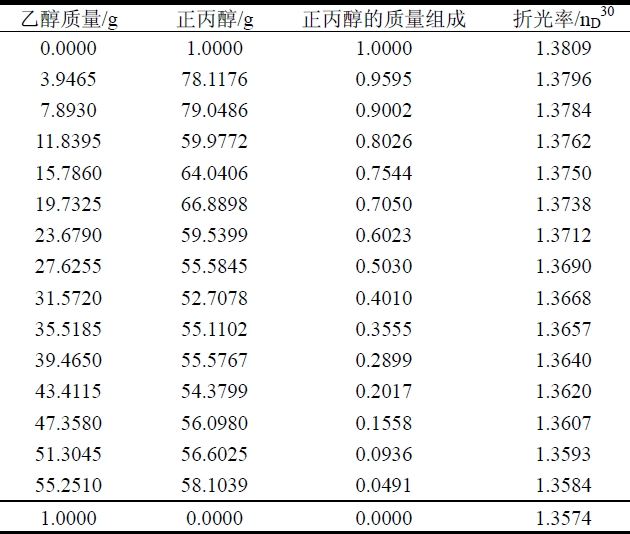 2.乙醇-正丙醇物系組成與折光率關(guān)系測定