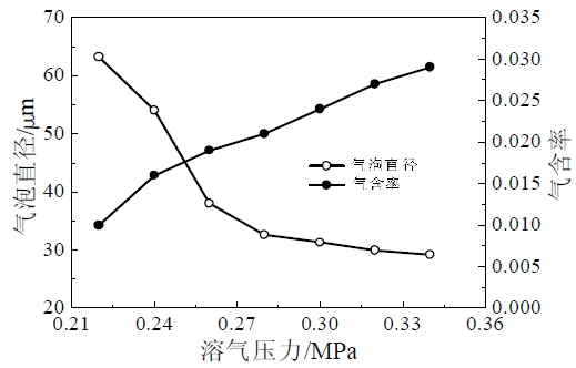 圖2 溶氣壓力對氣泡直徑及氣含率的影響