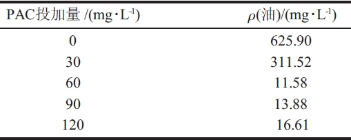 表1 PAC 投加量對處理后污水含油濃度的影響