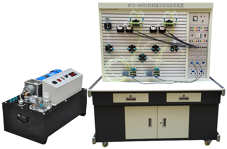 MYYA-18B 透明液壓傳動(dòng)實(shí)訓(xùn)裝置(外泵站)是根據(jù)《液壓傳動(dòng)》《液壓原理》《機(jī)械基礎(chǔ)》等教材內(nèi)容要求和國內(nèi)液壓元件特點(diǎn),由控制回路,壓力控制回路,速度控制回路,順序控制回路等基本功能回路組成。本演示系統(tǒng)通過對(duì)以上四大基本功能的十八種基本控制回路的實(shí)驗(yàn)演示,使學(xué)生能熟識(shí)常用液壓元件的結(jié)構(gòu),性能及用途,掌握十幾種基本回路的工作過程及原理,提高學(xué)生故障處理及解決問題的能力,在實(shí)驗(yàn)演示中得到啟發(fā),引發(fā)興趣,利用它可以對(duì)本產(chǎn)品所提供的各種元件容限內(nèi)的其它油路進(jìn)行實(shí)驗(yàn)(如圖設(shè)計(jì),畢業(yè)設(shè)計(jì))。