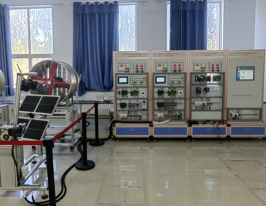由光源模擬跟蹤裝置、光源模擬跟蹤控制系統(tǒng)、能量轉換控制存儲系統(tǒng)、離網逆變負載系統(tǒng)、監(jiān)控系統(tǒng)五個部分組成,各功能部分通過通訊電纜和連接電纜進行連接,形成一套能夠展示并動手設計、安裝、調試的太陽能光伏發(fā)電工廠應用的設備。