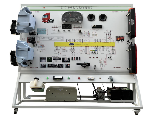 該設(shè)備采用全新豪沃ZZ1167M4611W 柴油機(jī)整車電器實(shí)物為基礎(chǔ),充分展示汽車儀表系統(tǒng)、燈光系統(tǒng)、雨刮系統(tǒng)、喇叭系統(tǒng)、發(fā)動(dòng)機(jī)電器系統(tǒng)、起動(dòng)系統(tǒng)和充電系統(tǒng)等汽車電器各系統(tǒng)的組成結(jié)構(gòu)和工作過程。