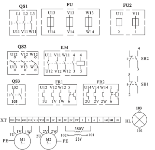 | M1、M2 | 三相鼠籠異步電動機(jī) |