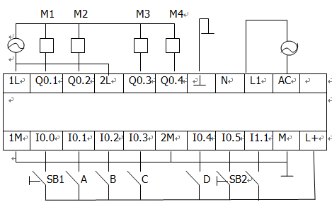 | 停止按鈕SB2 | I0.5 | M2 | Q0.2 |