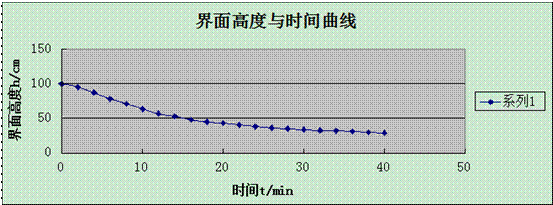 實(shí)驗(yàn)開始時(shí),沉淀柱上端出現(xiàn)一清晰的泥—水界面并等速下沉。這是由于懸浮顆粒的相互牽制和強(qiáng)烈干擾,均衡了他們各自的沉淀速度,使顆粒群體以共同干擾后的速度下沉。此