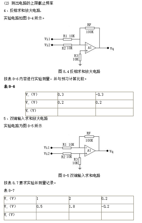 1、總結(jié)本實(shí)驗(yàn)中5種運(yùn)算電路的特點(diǎn)及性能。
