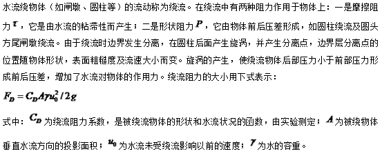 橋墩形繞流體為圓頭方尾的純體。水流脫離橋墩后,形成一個(gè)旋渦區(qū)尾流。在紊流區(qū)不斷交替在二側(cè)產(chǎn)生旋轉(zhuǎn)方向相反的旋渦,即卡門(mén)渦街。(可與圓柱體繞流比較)。