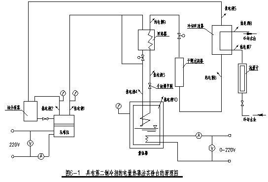 整個實驗裝置由三部分組成:1、電量熱器;2、制冷系統(tǒng);3、水冷卻系統(tǒng)。