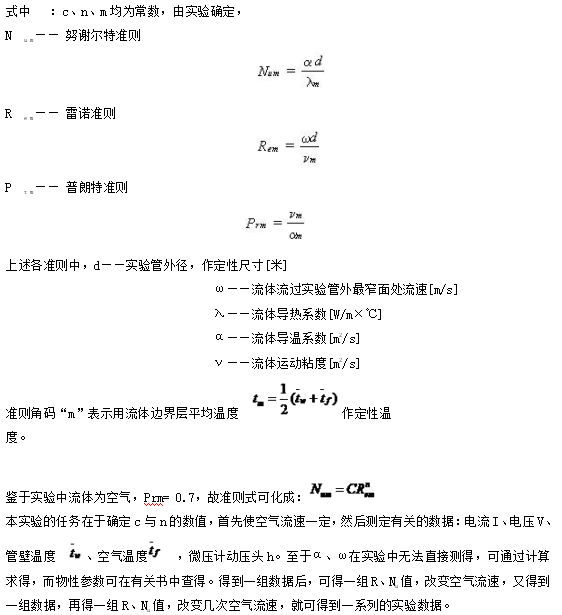 2.測(cè)定空氣橫向流過單管表面時(shí)的平均放熱系數(shù)α,并將實(shí)驗(yàn)數(shù)據(jù)整理成準(zhǔn)則方程式;