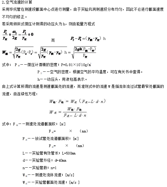 由于實(shí)驗(yàn)段前有兩段整流,可使進(jìn)入實(shí)驗(yàn)段前的氣流穩(wěn)定。畢托管置于流速段,測(cè)速段截面較實(shí)驗(yàn)段小,以使流速提高,測(cè)量準(zhǔn)確。風(fēng)量電子調(diào)速調(diào)節(jié)。實(shí)驗(yàn)風(fēng)洞中安裝了一根實(shí)驗(yàn)管,管內(nèi)裝有電加熱器作為熱源,管壁嵌有四支熱電偶以測(cè)壁溫。