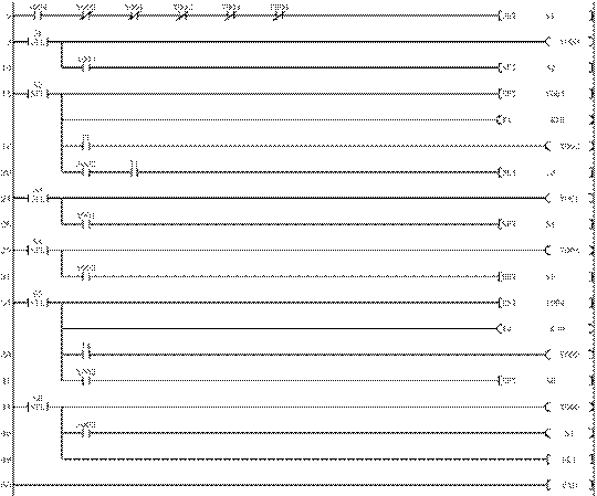 0 LD X004 1 ANI Y000 2 ANI Y001 3 ANI Y002 4 ANI Y003 5 ANI Y004 6 SET S1 8 STL S1 |