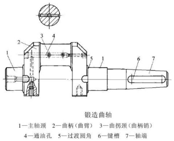 曲軸主要由主軸頸、曲臂、曲軸銷和平衡鐵組成。根據(jù)需要,曲軸可作成單曲拐、雙曲拐和多曲拐等。曲軸可用鑄造或鍛壓方法制造。