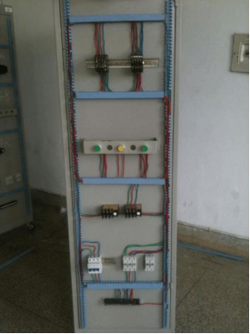 在長方體的控制柜連接我們的電路圖,要求工藝美觀,實習時我們組分工,因為電路比較復雜,需要熱仔細檢查,還要達到美觀的要求,必須有人設計線的連接方向,在分工下,每個人都各盡其責,我們完成了線的連接。