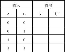 3、啟動(dòng)EWB的仿真功能,按表1的輸入狀態(tài)組合將開關(guān)A、B擲于不同的位置狀態(tài),并觀察顯示燈的亮暗情況,將結(jié)果記入表中。應(yīng)的邏輯真值表中。