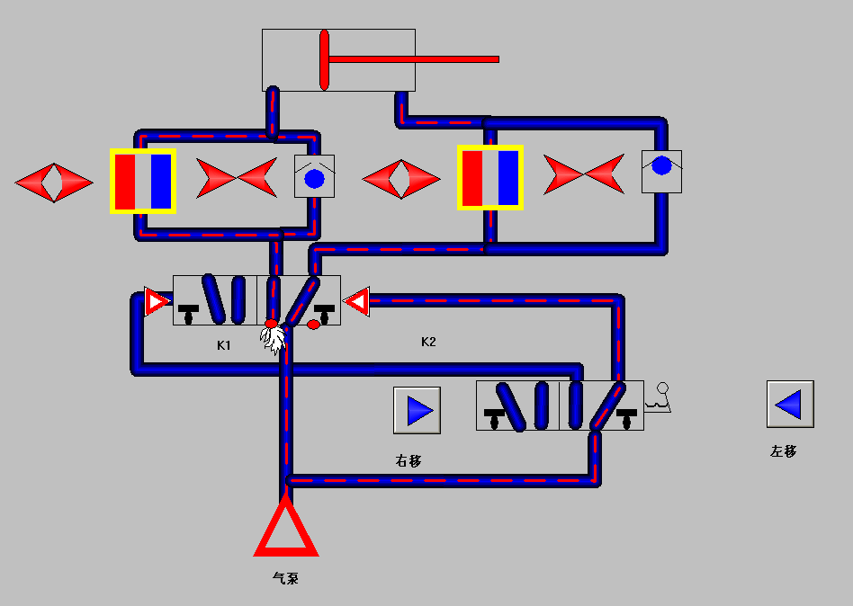 用組態(tài)仿真畫面演示控制的氣動(dòng)控制實(shí)訓(xùn)示列