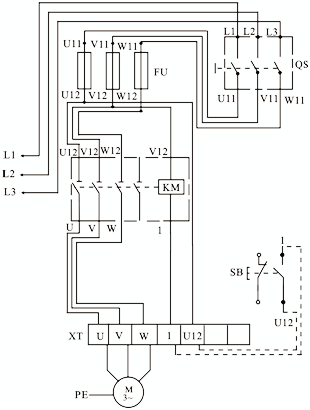 檢查接線(xiàn)無(wú)誤后,接通交流電源,“合”開(kāi)關(guān)QS,此時(shí)電機(jī)不轉(zhuǎn),按下按鈕SB,電機(jī)即可起動(dòng),松開(kāi)按鈕電機(jī)即停轉(zhuǎn)。若電機(jī)不能點(diǎn)動(dòng)控制或熔絲熔斷等故障,則應(yīng)“分”斷電源,分析排除故障后使之正常工作。