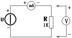 按圖3-2接線,調(diào)節(jié)穩(wěn)壓電源的輸出電壓U,從0 伏開(kāi)始緩慢地增加,一直到10V,記下相應(yīng)的電壓表和電流表的讀數(shù)UR、I。