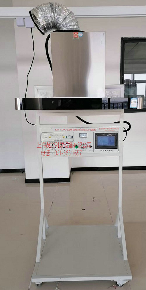 本裝置由變頻式抽油煙機實物、電氣控制板、實訓考核系統(tǒng)和實訓臺組成。