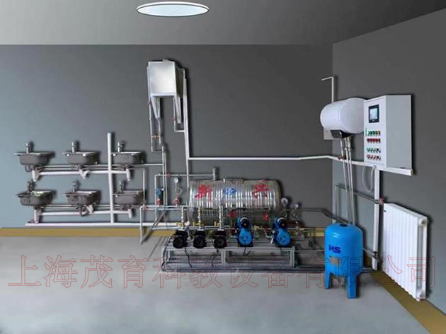1、生活給水系統(tǒng):主要有給水箱、給水泵、給水管道、壓力變送器、脈沖水表、水龍頭和淋浴頭等組成。管路采用不銹鋼管進(jìn)行設(shè)計,可進(jìn)行不銹鋼管的切割、安裝和通水試驗(yàn)操作,通過控制系統(tǒng)可實(shí)現(xiàn)生活給水系統(tǒng)的變頻恒壓供水功能,實(shí)現(xiàn)單泵變頻控制或雙泵切換控制等功能;通過脈沖式水表可以完成用水量的計量。