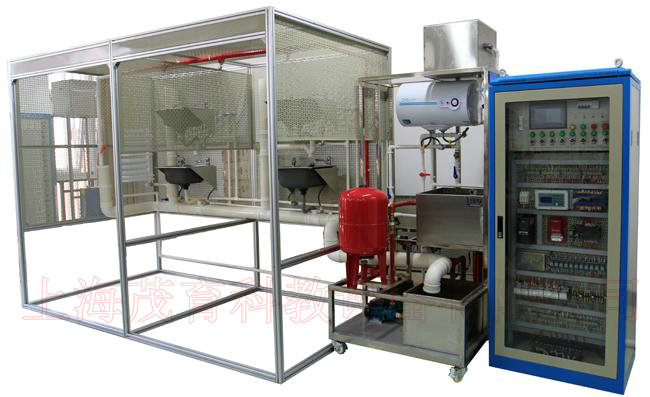 8.消防給水系統(tǒng):主要有給水箱、噴淋泵、穩(wěn)壓罐、濕式報(bào)警閥、壓力開(kāi)關(guān)、水流指示器、消防給水管道、閉式噴淋頭等組成。管路采用鍍鋅管進(jìn)行設(shè)計(jì),可進(jìn)行鍍鋅管的切割、套絲、安裝和通水試驗(yàn)操作,通過(guò)控制系統(tǒng)可實(shí)現(xiàn)噴淋滅火功能。