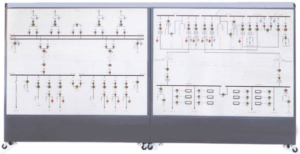 本裝置是針對變電站倒閘操作而專門研制的實訓裝置。本系統(tǒng)含35kV、10kV和0.4kV三個電壓等級:35kV具有4路進線,雙母帶聯(lián)絡(luò);10kV側(cè)采用單母分段,兩入兩出,環(huán)網(wǎng)供電;0.4kV側(cè)采用單母分段,并具有備用發(fā)電系統(tǒng)。在此典型35kV變電站模型上,學生可以進行各種工況下的倒閘操作。變電站的電壓等級和結(jié)線方式也可以根據(jù)用戶要求設(shè)計。因此本裝置適合各類職業(yè)院校供配電類、電力公司、職業(yè)技能培訓部門等機構(gòu)的培訓、考核。