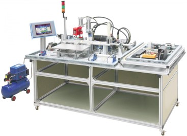 本裝置的實訓(xùn)工作臺為鋁合金型材組合而成,臺面上安裝有上料、傳送、沖壓加工、夾緊、 鉆孔加工、分揀、入料槽等,并配有液壓系統(tǒng)、氣壓系統(tǒng)、變頻器及繼電器控制、PLC等