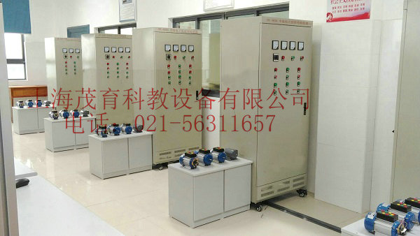 該裝置按標準電氣控制柜設計制造規(guī)格,充分利用雙面位置,柜內裝有完成各種照明電路所需的單相電度表、日光燈、單聯開關、插座、感應開關、漏電開關等,以及電氣控制所需要的多種低壓電器,如漏電斷路器、熔斷器、電流互感器、交流接觸器、時間繼電器、熱繼電器、中間繼電器、行程開關、按鈕、信號燈、轉換開關、電壓表、電流表、功率表及電度表等,為了延長電器使用壽命,各電器的接點都與接線端子相連,再由接線端子與被控制電氣連接。