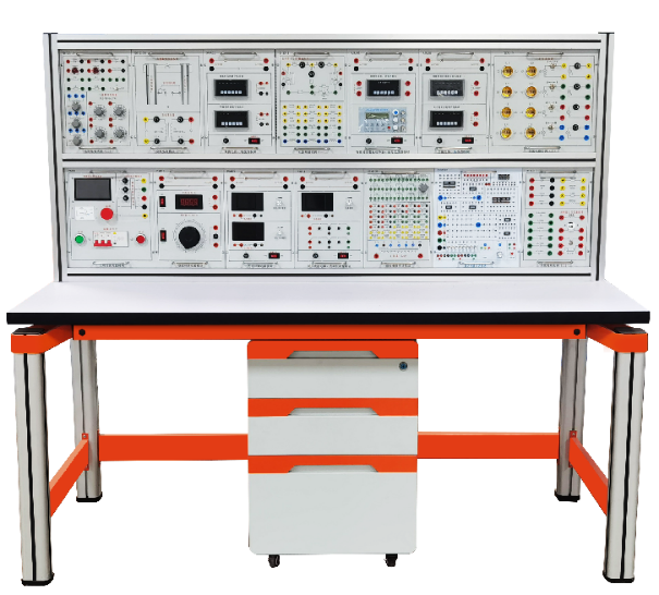 實驗平臺由實驗桌、實驗臺架、存儲柜、實驗掛箱組件、配件等組成。具體參數(shù)如下: