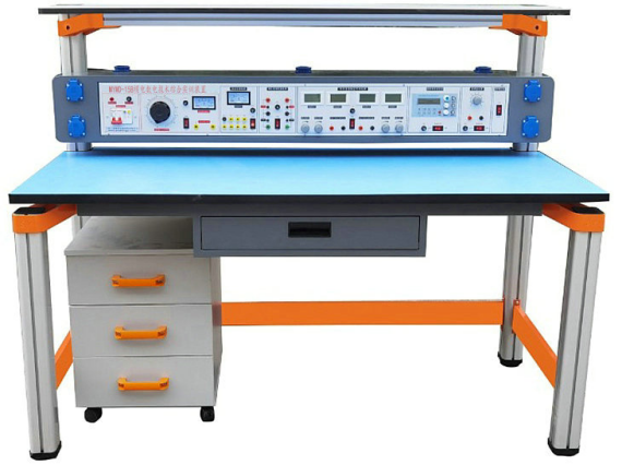 實(shí)驗(yàn)桌后面二支截面尺寸70mm×70mm桌腳向上延伸,與一次成型鋁壓鑄框架連接構(gòu)件構(gòu)成(非焊接工藝)牢固的支架,與主機(jī)箱、儀器架、電源控制箱組成一個(gè)完整的實(shí)訓(xùn)屏。